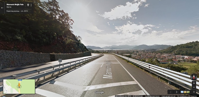Маршрут на арендованной машине будет проходить только по трассе D400 вдоль горных пейзажей. Дорога от аэропорта до городка Gökova не имеет сложных участков, а про все сложности маршрута от этого городка до Мармариса я Вам уже рассказывала :).