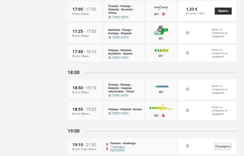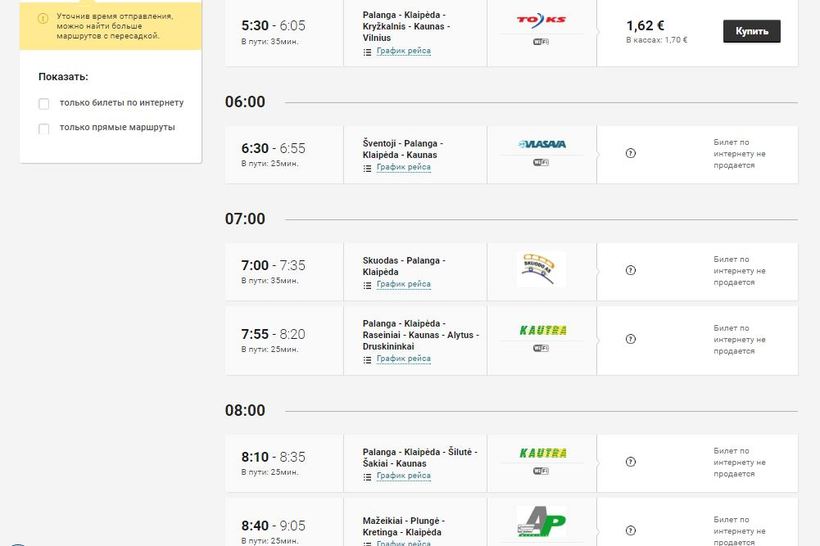 Также можно купить билеты онлайн, на сайте autobusubilietai (на нем же и расписание можно смотреть). Но билеты тут можно взять далеко не на все рейсы.