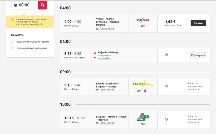 Также билеты можно купить и на сайте Autobusubiletai, но далеко не на все рейсы.