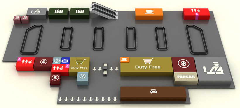 В аэропорту имеется два международных терминала (Dış hatlar) и один внутренний (İç hatlar). Международные терминалы находятся на расстоянии 2,5 км друг от друга. Добраться из одного терминала в другой можно: