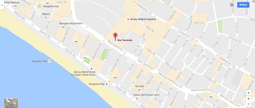Если на маршруте не будет заторов или ремонтных работ, то через один час Вы прибудете на автовокзал в Аланью (Bus Terminals).