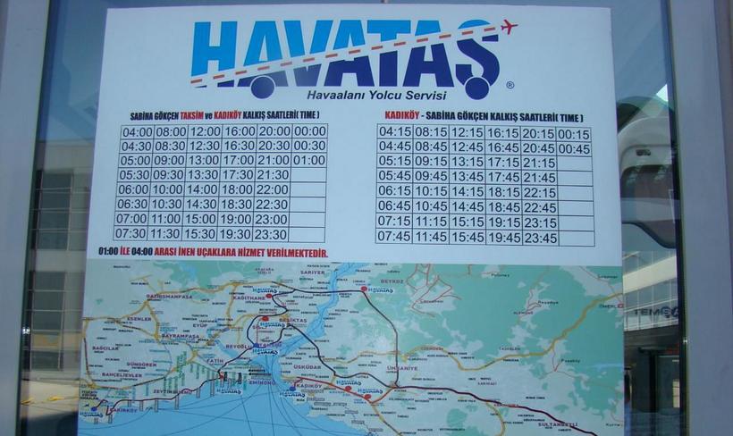 Пройти на автобусную остановку можно по указателям. Помимо указателей при выходе с терминала над головой будет табло с возможными направлениями, ориентируйтесь по нему. От себя скажу, остановка Хаваташ находится на другой стороне от выхода с международного терминала. Нужно перейти дорогу с разделительной полосой в виде отбойников посередине. Помимо Хаваташа можно сесть еще на автобусы Е10 или Е11, проезд в который немного дешевле. Объяснить это просто – Хаваташ описан во всех путеводителях, а вот остальные нет. Реклама, однако. Смотрите внимательно на электронное табло на лобовом стекле автобусов. Везде можно рассчитаться вашей Истанбул Карт.