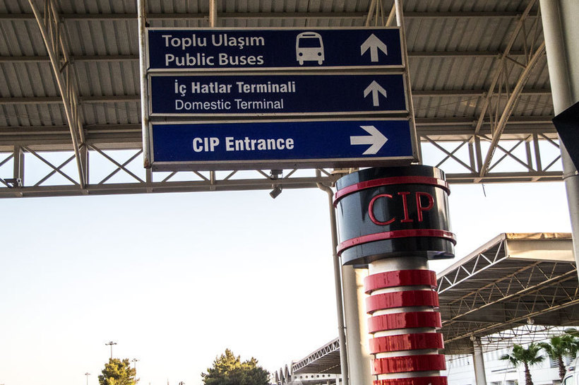 Прежде всего, вам сначала нужно доехать до Алании, там есть автовокзал, от которого уже можно будет сесть на автобус до Махмутлара. Вам нужно сначала будет найти автобусную остановку, которая находится между Терминалами 1 и 2. Там будет указатель, указывающий на остановку, на фото ниже это хорошо видно.