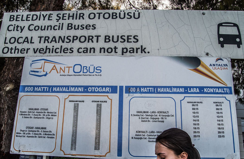Как только доберетесь до остановки, там вам надо сесть на автобус, который отправляется до автовокзала «Otogar». Вам нужен автобус №600, он отправляется каждые полчаса, начиная с 07:30 до 00:00. На автобусной остановке даже висит расписание, которое вы можете глянуть сами. Время в пути займет около часа.