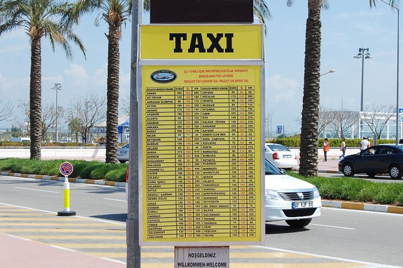 На такси можно гораздо быстрее добраться до Махмутлара, буквально за 2 с лишним часа, только стоить это будет намного дороже. Чтобы найти стоянку такси, надо ориентироваться на указатели, расположенные на территории аэропорта. Вы увидите табличку со стрелочкой, которая указывает на стоянку. На стоянке есть даже штендер с расценками, там есть стоимость практически до самых крупных городов. Все автомобили имеют счетчик, поэтому платить придется по нему.