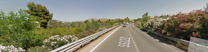 то SS-121 это классическая итальянская бесплатная дорога: узкая, по одной полосе в каждое из направлений и минимум дорожных знаков и прочего оснащения. Вот как она выглядит:
