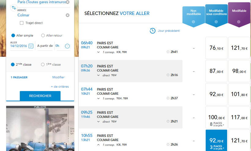 Отправка всех поездов происходит из Восточного вокзала Парижа, а прибытие - на главную железнодорожную станцию Кольмара.