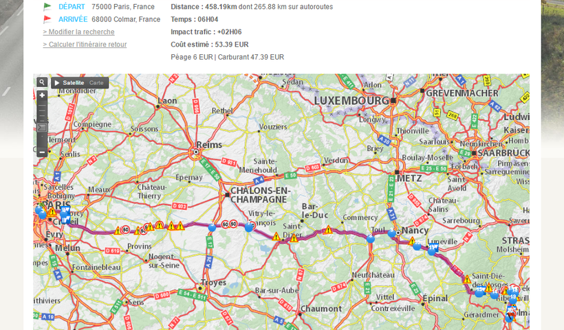 Париж — Кольмар, Эльзас — маршрут на карте