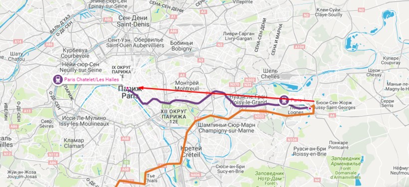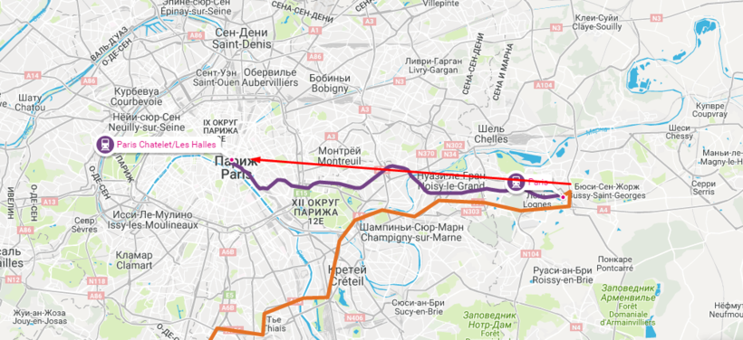 отправляются от крупного пересадочного узла «Шатле – Ле-Аль». Туда каждые 10 минут ходит поезд метро.