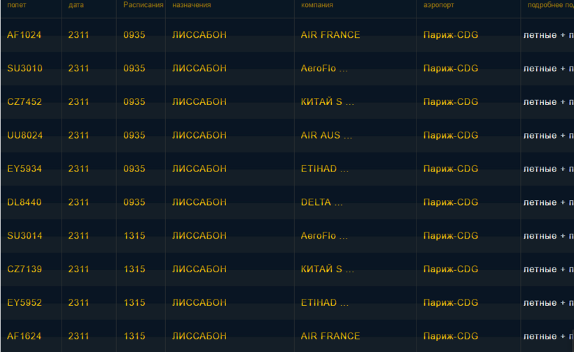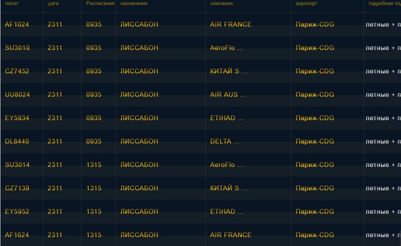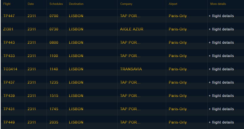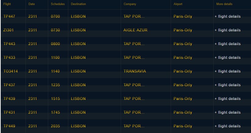 Расписание вылетов на Лиссабон смотрите на официальном сайте, для удобства ниже скрин с расписанием.