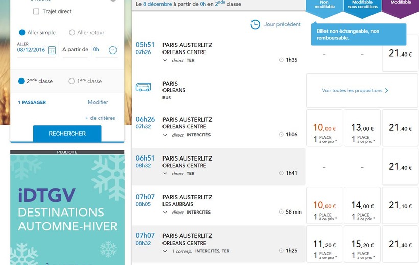 Можно воспользоваться как прямыми поездами, так и с пересадками, по времени так получается практически ну то же самое. Первый рейс отправляется с вокзала Аустерлиц (85 quai d'Austerlitz) уже в 05.05, а последний доступен в 23.07.