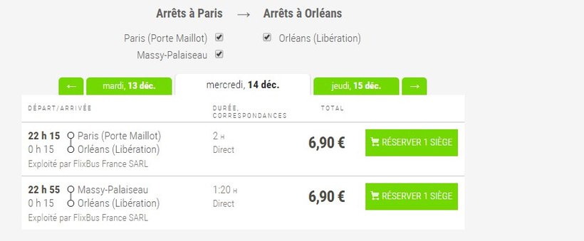 - Автобусы от Flixbus начинают движение с Porte Maillot в 22.15, с Massy-Palaiseau в 22.55.