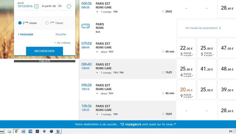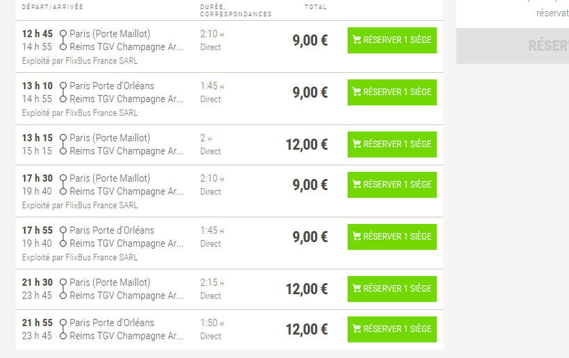 Ниже приведена информация о том, сколько часов вам потребуется, чтобы добраться от Парижа до Реймса, а также приведена примерная стоимость проезда (средняя цена билета) на том или ином виде транспорта.