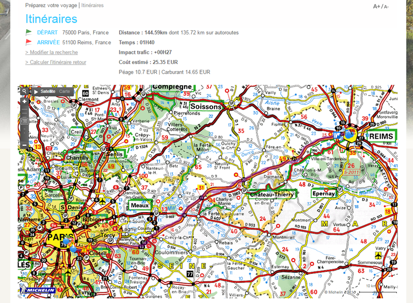 Ехать довольно просто. Выезжая из Парижа поворачиваем на автомобильную трассу А4, которой прямо едем в нужный город Реймс.
