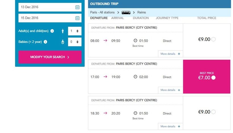 Добраться из Парижа в Реймс можно и пассажирским автобусом. Таким образом вы заедете за чуть менее чем два часа.