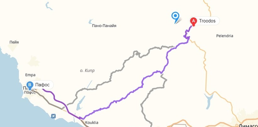 Пафос — Троодос — маршрут на карте