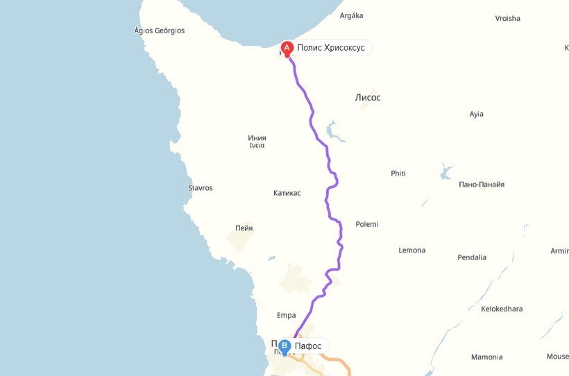 Пафос — Полис — маршрут на карте