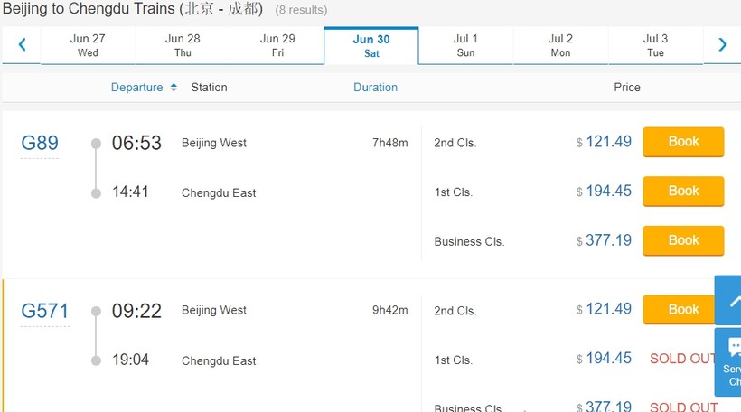 Стоимость проезда также зависит от типа поезда. Самый дешевый билет на скоростной «G» обойдется в 778 юаней (121 доллар) — это второй класс, более комфортные еще дороже. Что касается других поездов, то купить билет можно даже за 229 юаней (35 долларов), но это уже будет твердое сидячее место, на котором будет сложновато ехать сутки и более.
