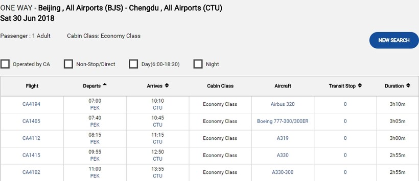 Ниже приведена информация о том, сколько часов вам потребуется, чтобы добраться от Пекина до Чэнду, а также приведена примерная стоимость проезда (средняя цена билета) на том или ином виде транспорта.