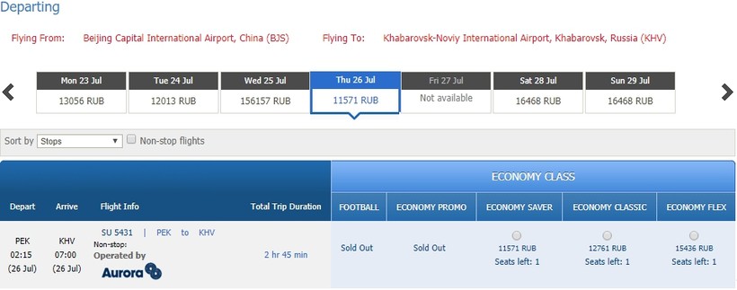 Однако и здесь не все идеально — между этими городами летает только один самолет от российской компании Аврора. Доступен этот рейс два или три раза в неделю. Поэтому, если хотите сесть в самолет и быстро добраться в Хабаровск (перелет занимает где-то три часа), билет покупайте заранее. А сам график полетов можно уточнить в аэропорту Пекина. Или зачем вам заморачиваться с поездкой на аэростанцию, можно все легко найти на официальном сайте Авроры.