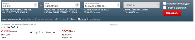 Билет на поезд из Пекина в Карымскую стоит покупать в кассе вокзала. А проездной в Хабаровск без проблем можно оформить на сайте РЖД.