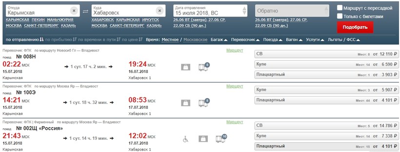 Время пересадки может быть различным — от шести часов и дольше, смотря на какой рейс купить билет. Из Карымской в Хабаровск ездит три поезда.