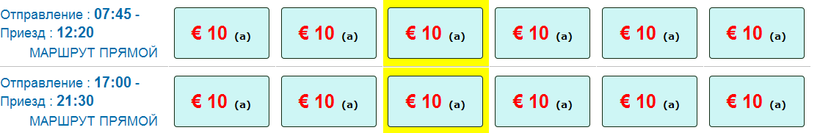 Стоимость проезда может довольно сильно колебаться в зависимости от даты выезда и наличия акций. Обычно более дешевый проезд на автобусе Eurolines – 10 евро против 15-22.