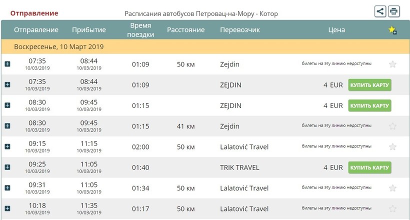 Проездной документ до Котора стоит 4 евро (298 рублей) плюс 0,5 евро (37 рублей) составит сбор автостанции за продажу вам этого билета.