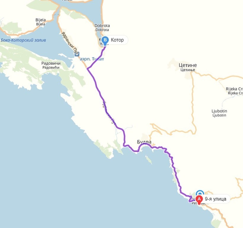Для отдыхающих на побережье структура дорог в Черногории довольно-таки проста. Вдоль всего побережья идет так называемое Адриатическое шоссе (оно же известно как Ядранский путь). По нему вы и сможете совершить путешествие из Петроваца до Котора. Здесь 2–3-полосная дорога. Эта самая третья полоса предназначена для обгона, но есть она не на всем пути. Временами тут встречаются серпантины, так что большую скорость я вам не советую развивать, это просто опасно. В сезон движение по этому шоссе напряженное. Для путешествия в Котор вы можете арендовать машину. Варианты смотрите на таких вот сайтах, к примеру. В среднем аренда авто обойдется в 30 евро (220 рублей) за сутки. Бензина на такую поездку у меня всегда уходит примерно 6–7 литров. Его цена в Черногории 1,2 евро за литр соответственно. По пути есть несколько заправок.