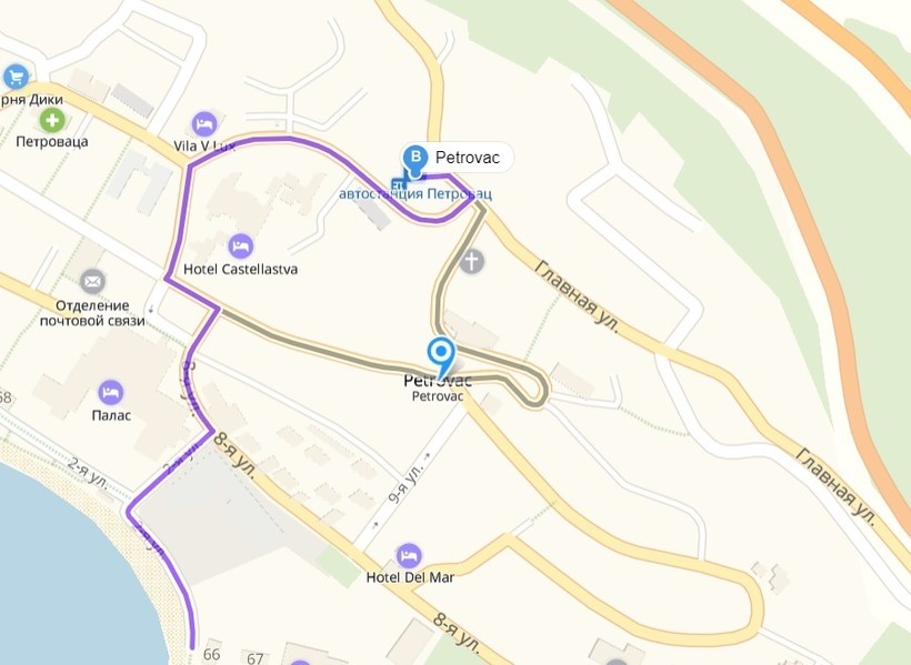 Автостанция в Петроваце находится примерно в одном километре от набережной.