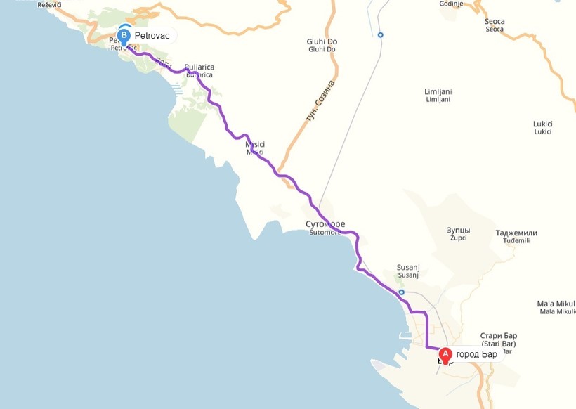 Морское путешествие из Петроваца в Бар возможно на экскурсионном катере, правда, все они заходят еще в Сутоморе по пути, так что такая прогулка затянется минимум на несколько часов. Можете, конечно же, с местными договориться в частном порядке, чтобы вас просто отвезли до города Бар. Тогда на дорогу уйдет минут тридцать примерно, все зависит от скорости катера.
