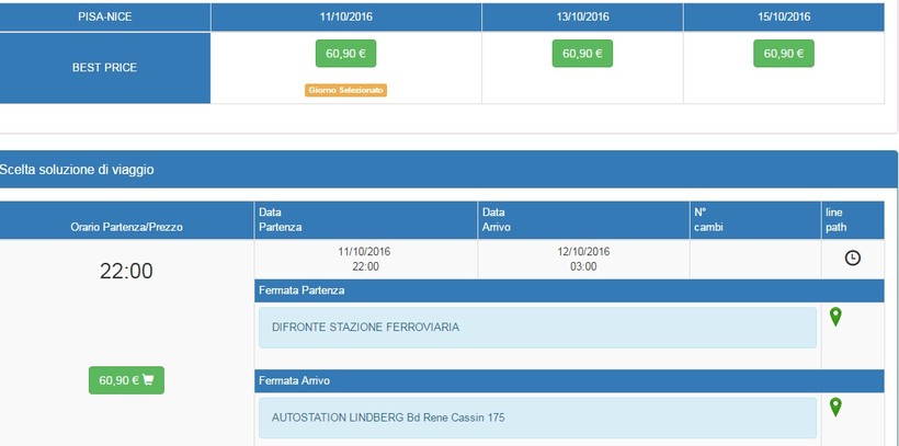 В Ниццу три раза в неделю ходят прямые автобусы из Пизы. Отправление в 22.00 каждый вторник, четверг и субботу. В 03.00 автобус пребывает в Ниццу.