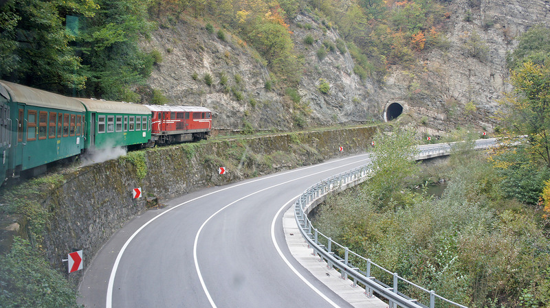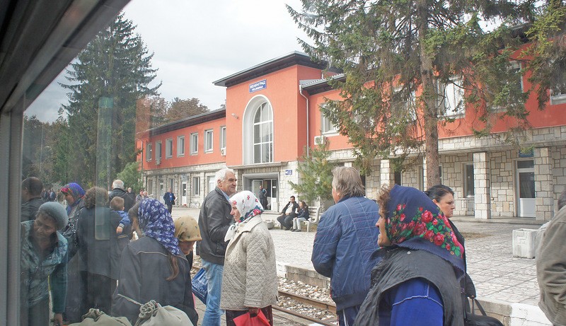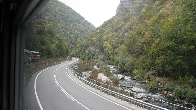 Пассажиров в поезд набивается много. Компания едет разношерстная. Цыгане, бабушки в национальных платках и мужички-крестьяне. От последней категории пассажиров по вагону разноситься запах пота, жареного лука и переработанной организмом ракии :). Весь этот местный "бомонд" ведет себя шумно. Первые десять минут в этом балагане чувствуешь себя не комфортно, но потом привыкаешь и начинаешь любоваться видами из окна поезда. Маршрут проходит по горной местности, так что есть на что посмотреть.