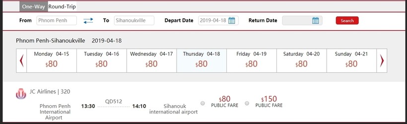 Перелет из Пномпеня в Сиануквиль обойдется в 322 000 риелей (80 долларов США).