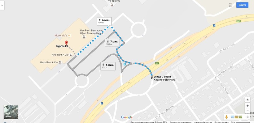 Автомобильная карта Аэропорт Бургас - Солнечный Берег