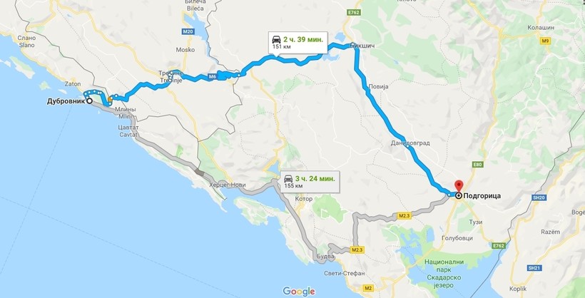 Из Подгорицы в Дубровник на машине