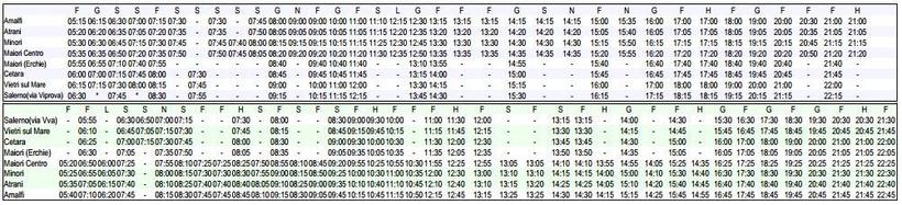В Амальфи нужно пересесть на автобус той же компании, идущий до Салерно. Они ездят с 05:15 до 21:00 каждые 45 мин-1,5 ч. Ехать от Амальфи до Салерно 1 час 15 мин, а прибывают они на остановку на Via Leonino Vinciprova, откуда и отходят автобусы в направлении Бари. Также эта остановка находится всего в нескольких минутах ходьбы от ЖД станции Salerno Centrale.