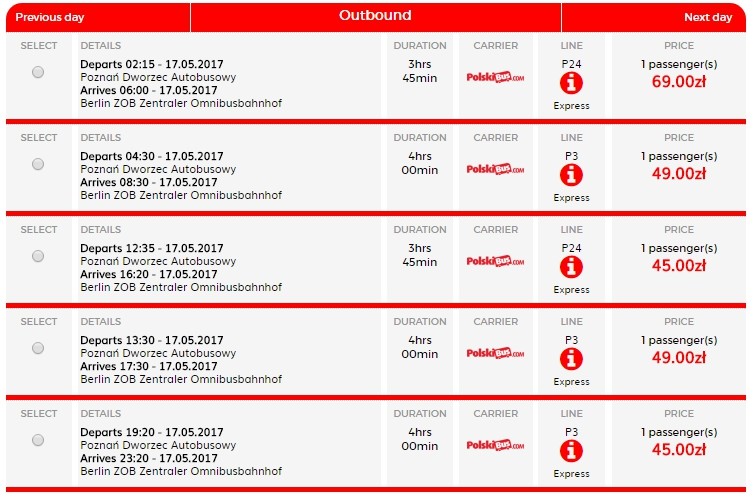 Из Познани в Берлин курсируют автобусы от известного в Польше перевозчика PolskiBus.