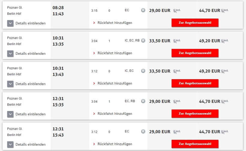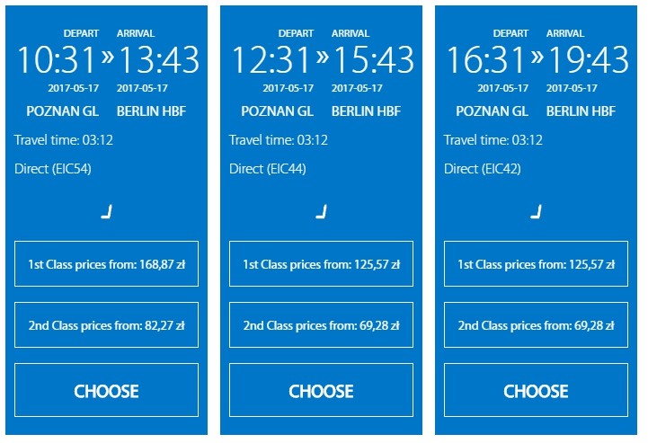 Количество доступных рейсов можно посмотреть как на сайте польской железной дороги, так и немецкой. Все веб страницы я укажу чуть ниже.