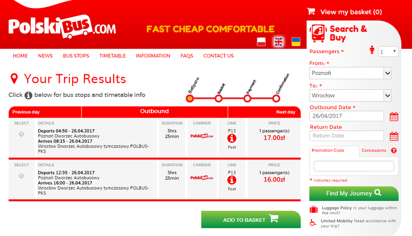 Передвигаться по Польше дешевле всего на автобусе. В стране работает несколько автобусных компаний, наибольшей популярностью пользуется PolskiBus. У этой компании есть рейсы практически во все города. Если нужно куда-то недорого доехать, то в 9 из 10 случаев поляки едут на автобусах PolskiBus. Автовокзал Познани находится недалеко от центра города, рядом с ЖД вокзалом Познань-Главный.Во Вроцлав отправляется два рейса в сутки: первый в 4:50, второй – в 12:35. Ехать к 4:50 на автовокзал – удовольствие из разряда садо-мазо. Мы придерживаемся традиционных ценностей, поэтому купили билеты на дневной автобус.