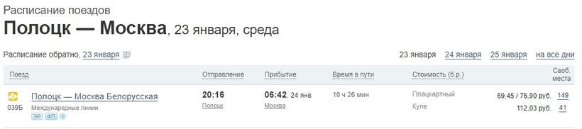 Из Полоцка в Москву на поезде