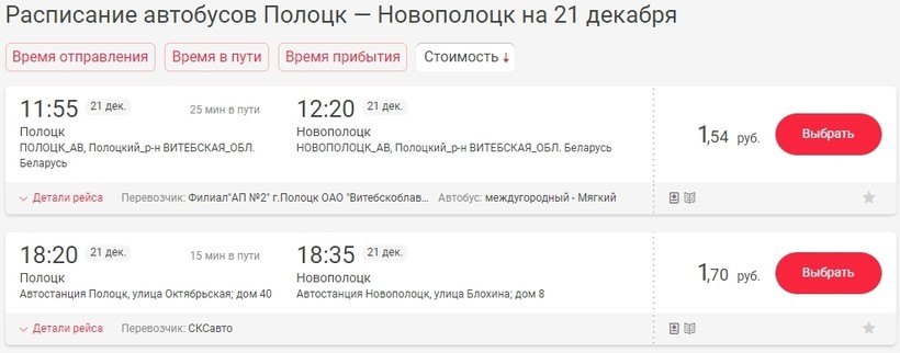 Что касается доступных рейсов, то я бы сказала, что их очень много. Во-первых, в Новополоцке останавливаются автобусы, идущие из других белорусских городов в Латвию или РФ. Также есть рейсы из Гомеля и других точек прямо в Новополоцк.