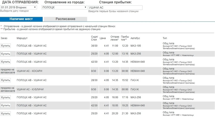 У меня к сожалению автомобиля нет, поэтому пришлось искать доступные автобусы или поезда. Что касается последнего, то воспользоваться железнодорожным транспортом не удастся, ведь в городе Ушачи нет ж/д вокзала. Самолеты не летают, поэтому остаются только автобусы.