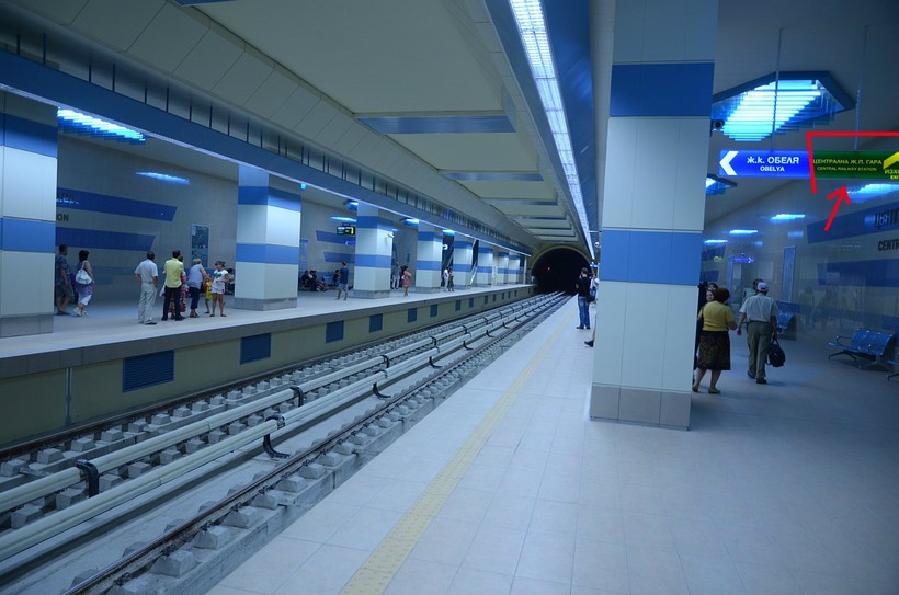 Станция метро "Централна Ж.П. Гара" и указатель, на который вам нужно ориентироваться при выходе.