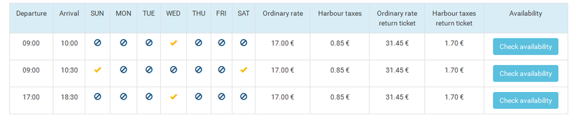К примеру, в этом году парому отправлялись в 09.00 и 17.00 в зависимости от дня недели. Кстати, этот транспорт достаточно быстрый, так как из одного порта в другой можно добраться всего за полтора часа.