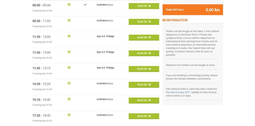 - Самые дорогие билеты у GoOpti – цена стартует от 33 евро (около 245 кун).