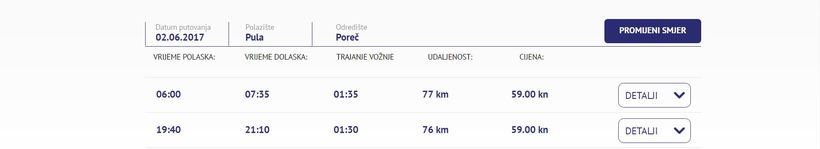 Отправляются автобусы от железнодорожной станции Пулы, она немножко западнее автовокзала если посмотреть по карте выше. Прибывают автобусы на тот же автовокзал в Порече. Честно говоря, не вижу никаких причин чтобы пользоваться услугами данной компании.