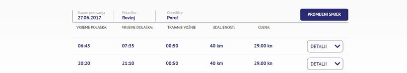 Все рейсы прямые и не предусматривают пересадок. С расписанием на конкретную дату сверяться лучше на сайте. Отправляются автобусы от автовокзала в Ровини, он находится вот тут:Прибытие же происходит на автостанцию в Порече, расположена она тут:Вторая компания, осуществляющая рейсы в данном направлении, называется Autobusni Promet. Автобусы у нее выглядят вот так: