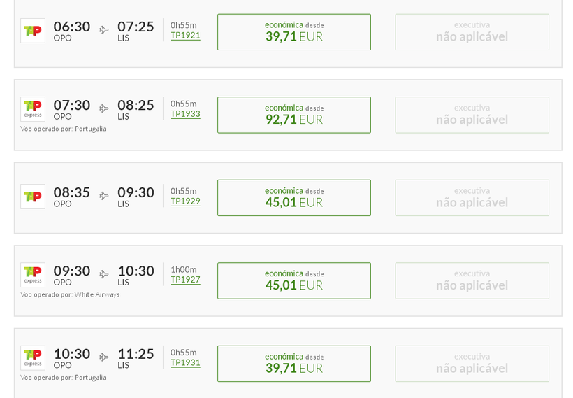 Из Порту в Лиссабон летают две компании-перевозчика: Ryanair и TAP Portugal. Они совершают примерно по десять рейсов ежедневно. В зависимости от времени года.