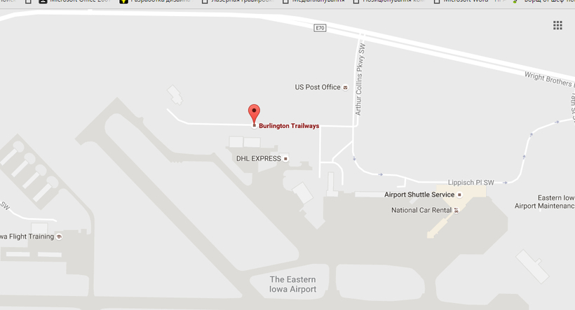 Так выглядит стоянка Trailways возле Аэропорта Cedar Rapids. Если Вы не разобрались, как дойти, Вам может помочь персонал в аэропорту, либо введите в навигаторе "Burlington Trailways".